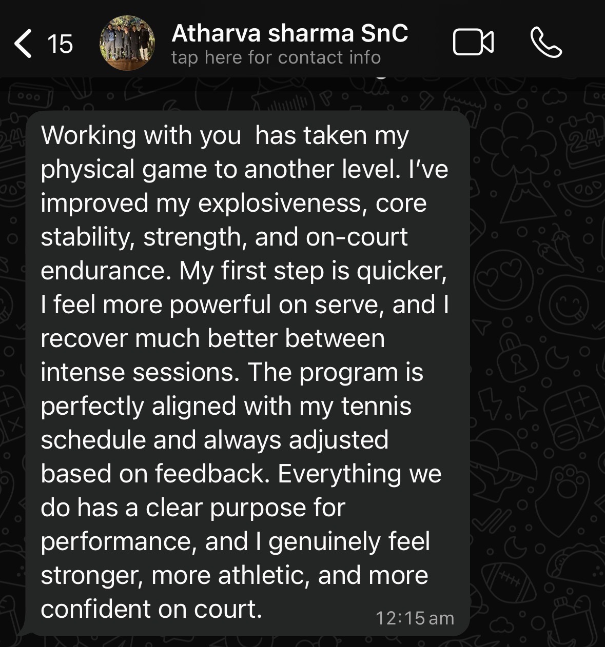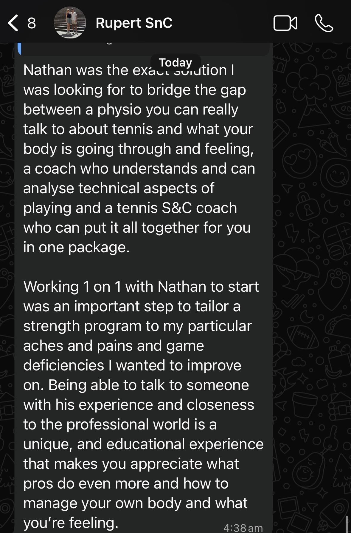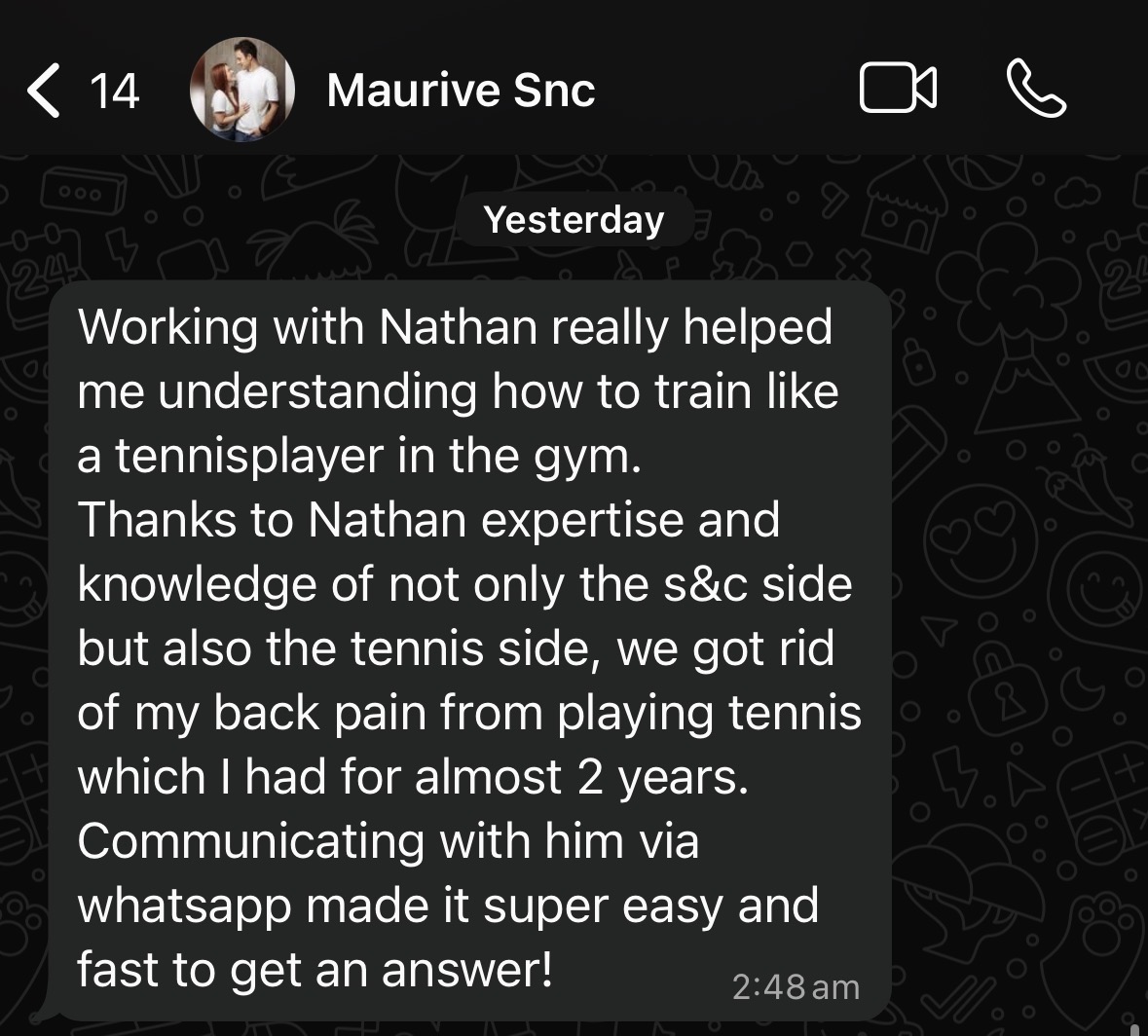 No more guessing in the gym. Fully programmed remote training, direct WhatsApp access, and experience from Grand Slam level to college-bound juniors.